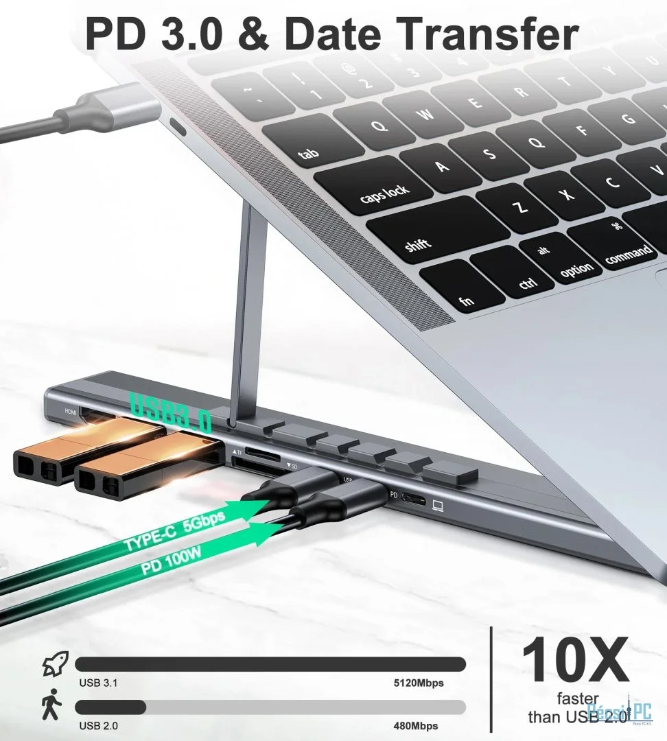 A Mac és PC felhasználók számára, akik minimalista kialakításban szeretnék maximalizálni a csatlakoztathatóságot, a Choetech 7 az 1-ben USB-C Hub Stand egy könnyű, ergonomikus és összecsukható laptop állvány, amely 7 integrált porttal rendelkezik, beleértve az USB-C és USB-A 5Gbps, valamint a nagy felbontású 4K HDMI 30Hz-es videót.