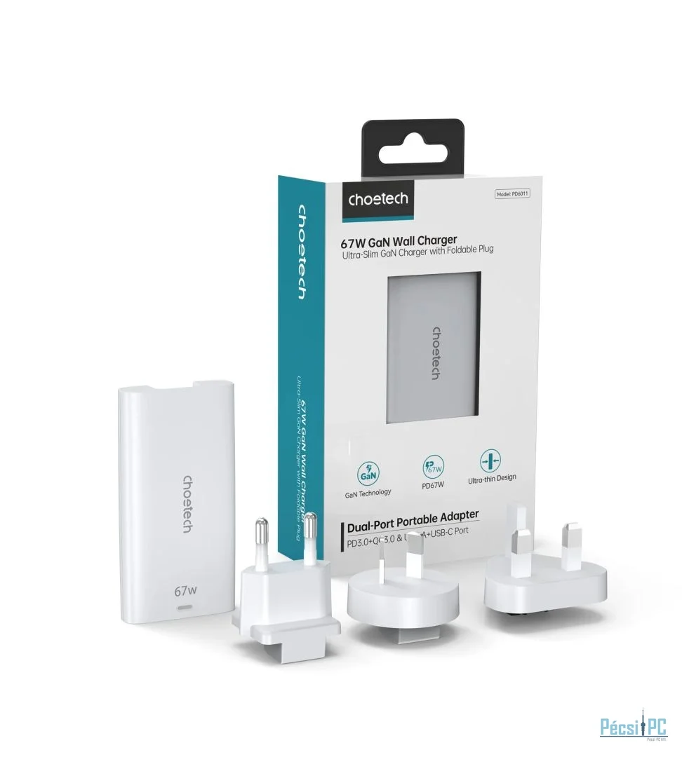Ez a hordozható adapter fejlett GaN technológiával működik, amely nagyobb hatékonyságot és a legjobb hőelvezetést biztosítja.