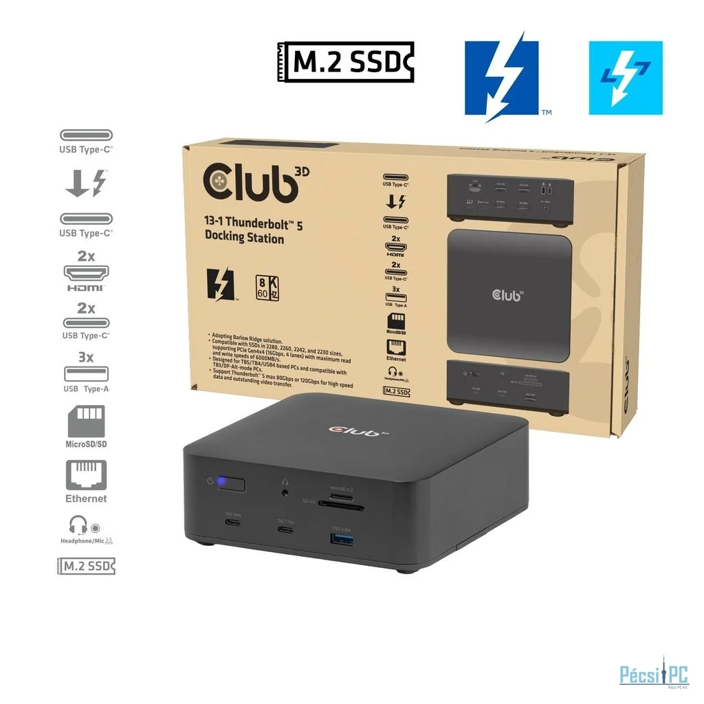 Club3D 13-1 Thunderbolt 5 Docking Station M.2 SSD 2x HDMI 8K60Hz Thunderbolt Share Certified 180W