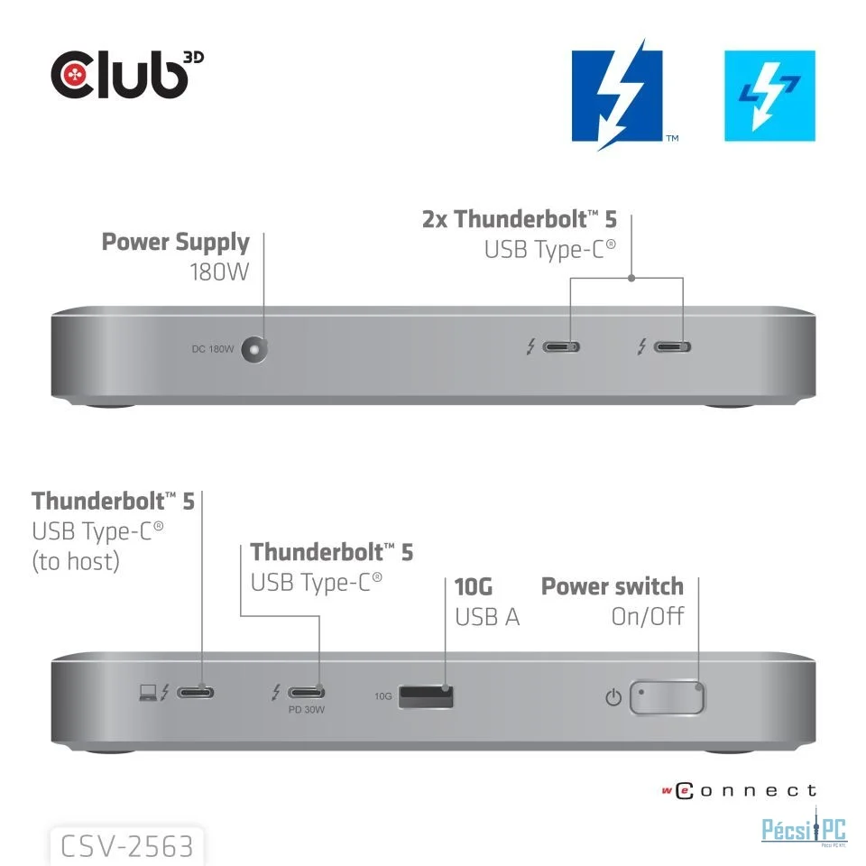 Club3D 5-1 Thunderbolt 5 Hub Triple video 5K60Hz Thunderbolt Share Certified 180W