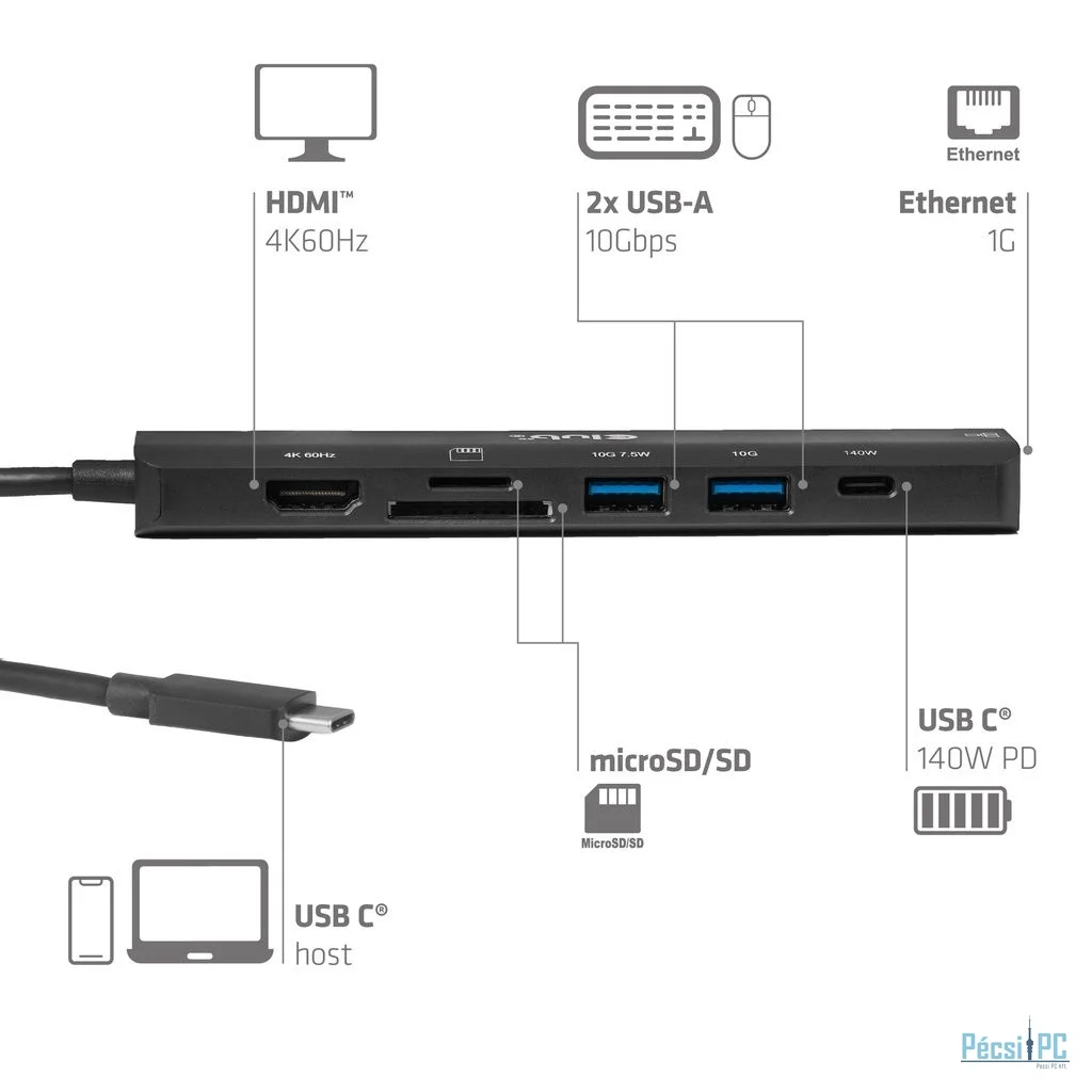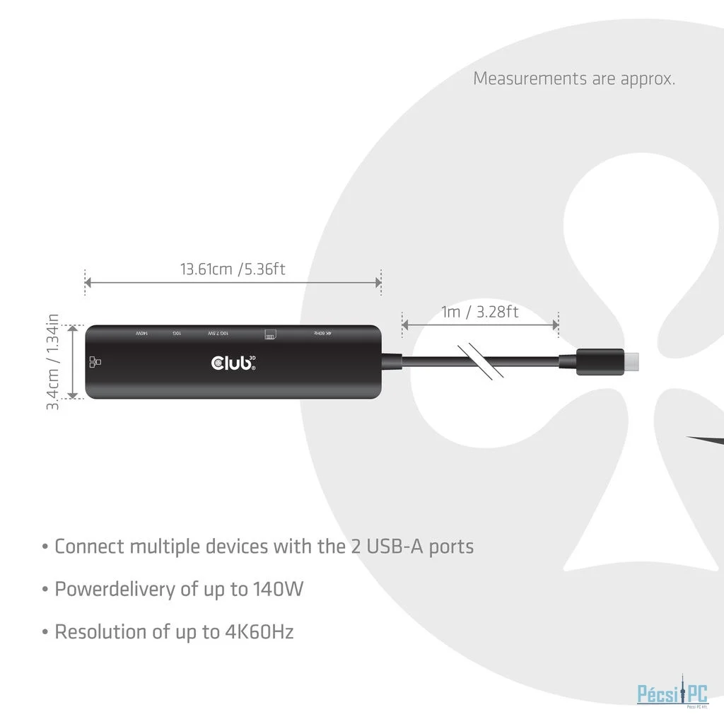 Club3D CSV-2555 7-1 USB-C to HDMI Hub 4K60Hz PD3.1 140W 1m