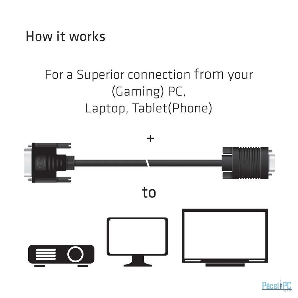Videó kábel, DVI, VGA, Male/Male, 3m, Black