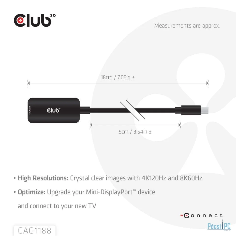 Club3D Mini DisplayPort 1.4 to HDMI 8K60Hz M/F Adapter Black