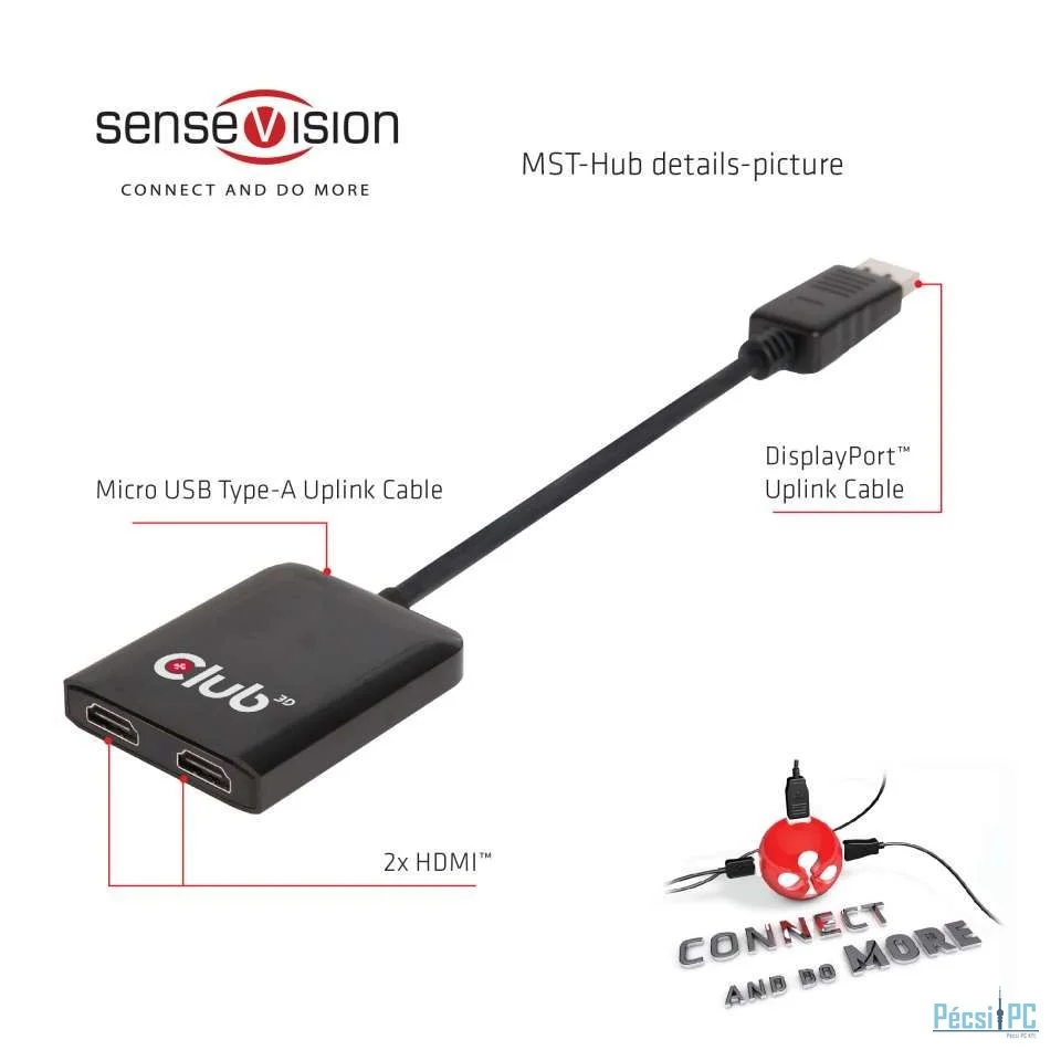 Club3D Multi Stream Transport Hub DisplayPort 1.2 Dual Monitor to HDMI