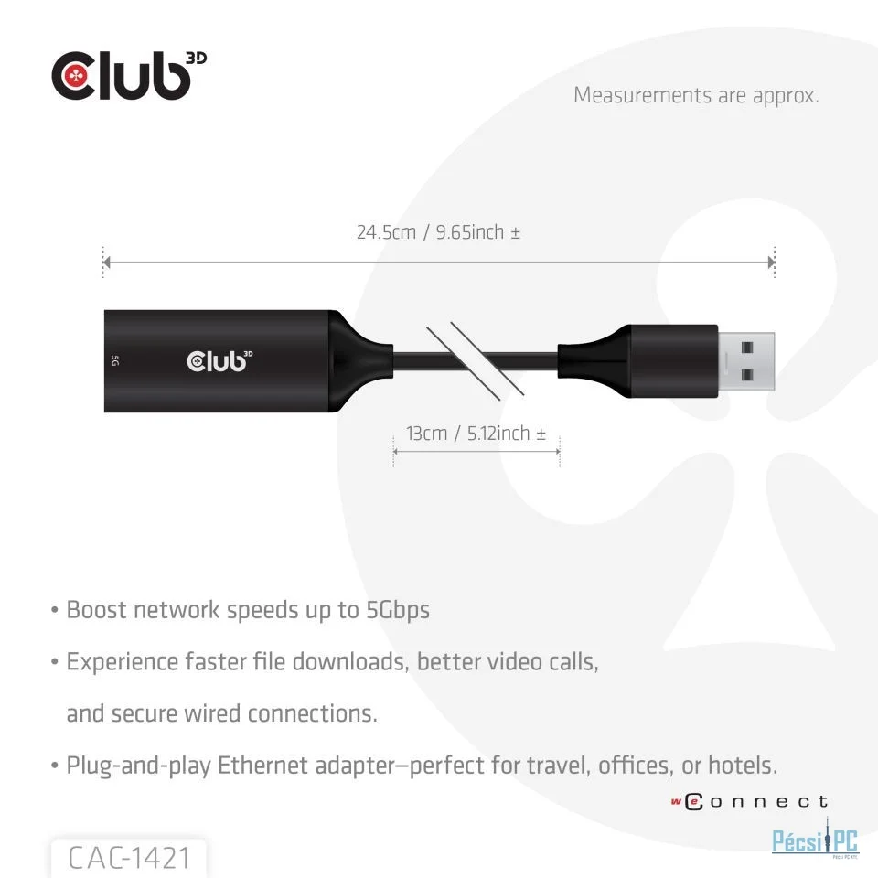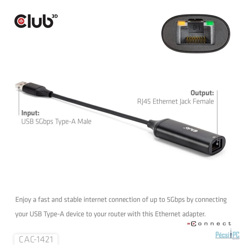 Club3D USB 5Gbps Type-A to RJ45 Ethernet Adapter M/F