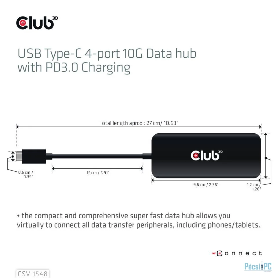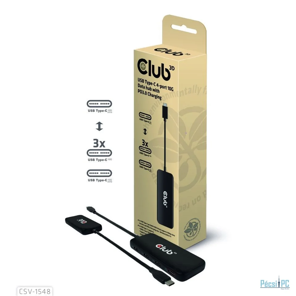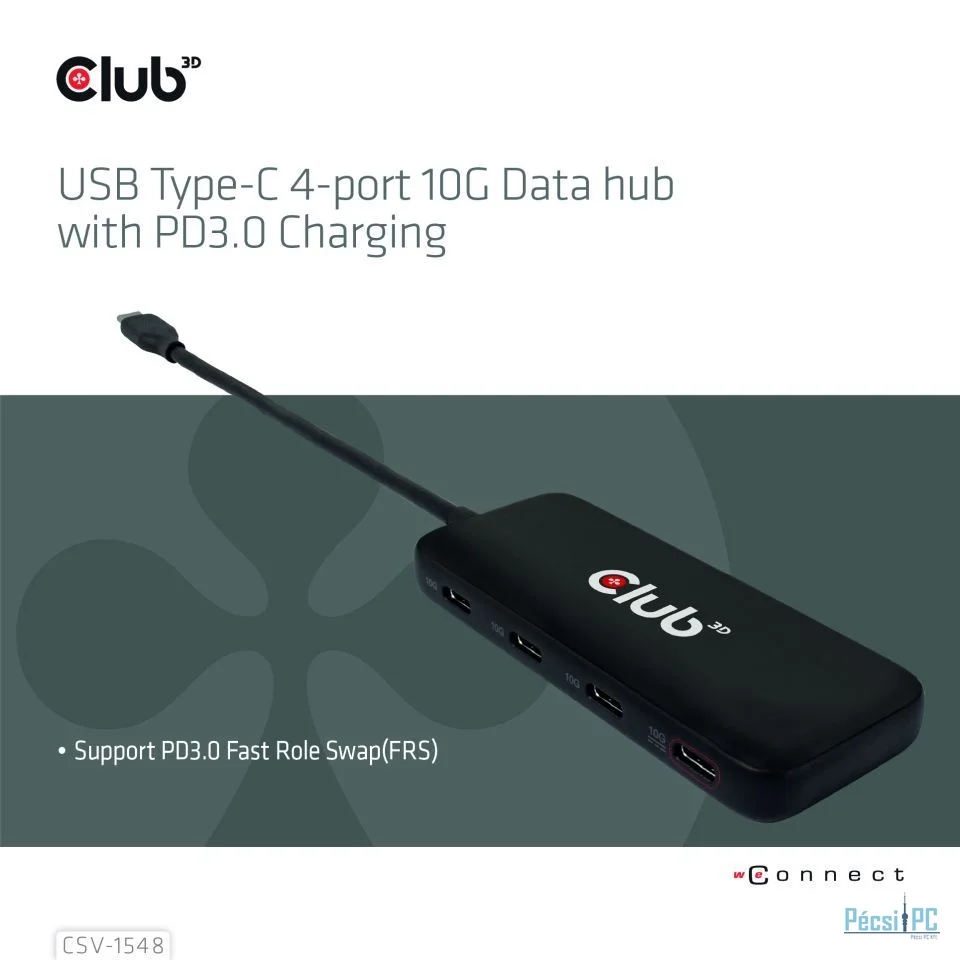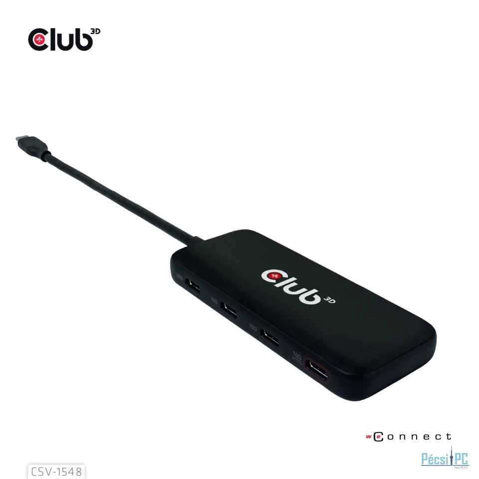 Club3D USB Type-C 4-port 10G Data hub with PD3.0 Charging Black