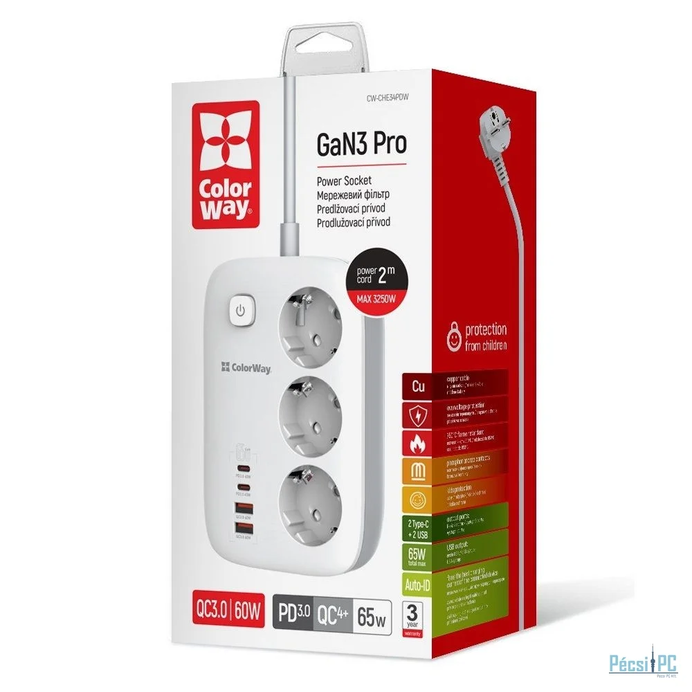 ColorWay Hálózati Elosztó Kapcsolóval 3DIN 2m White