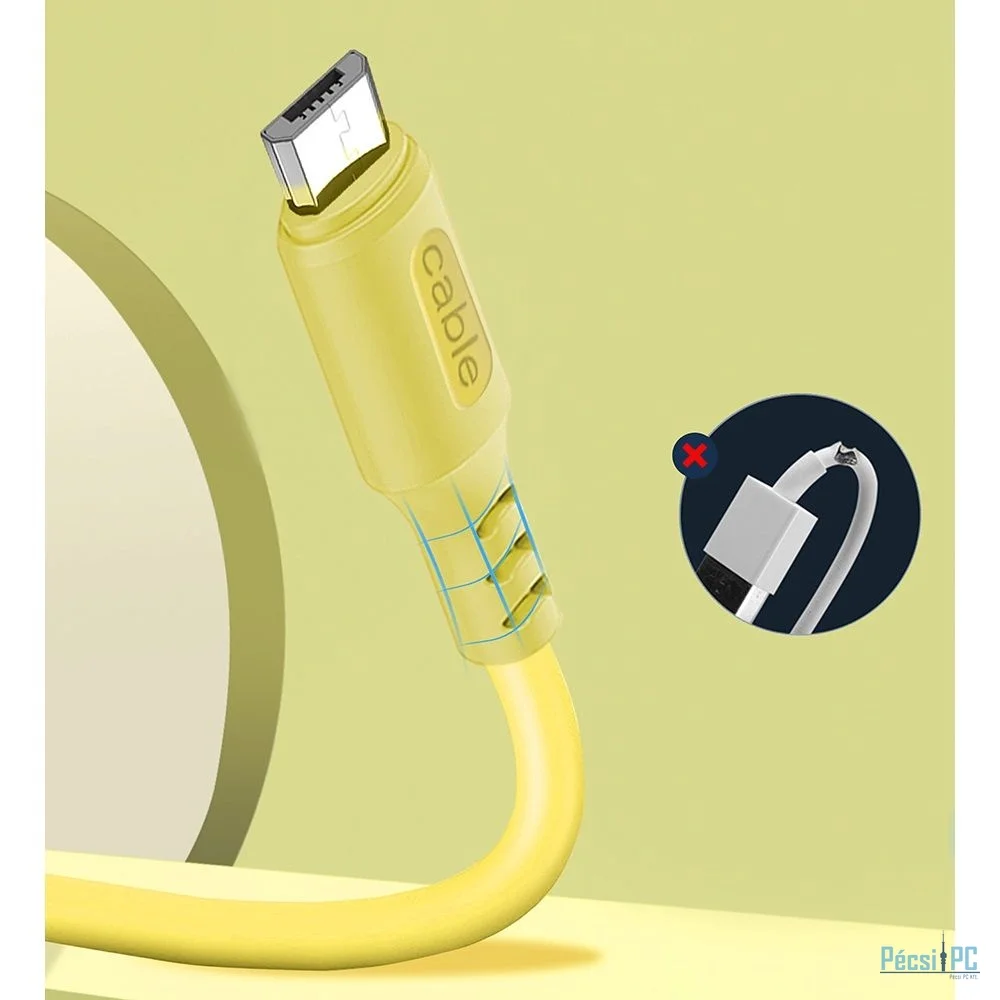 USB kábel, USB-A, microUSB, USB2.0, Male/Male, 1m, Yellow, Töltő és adatkábel