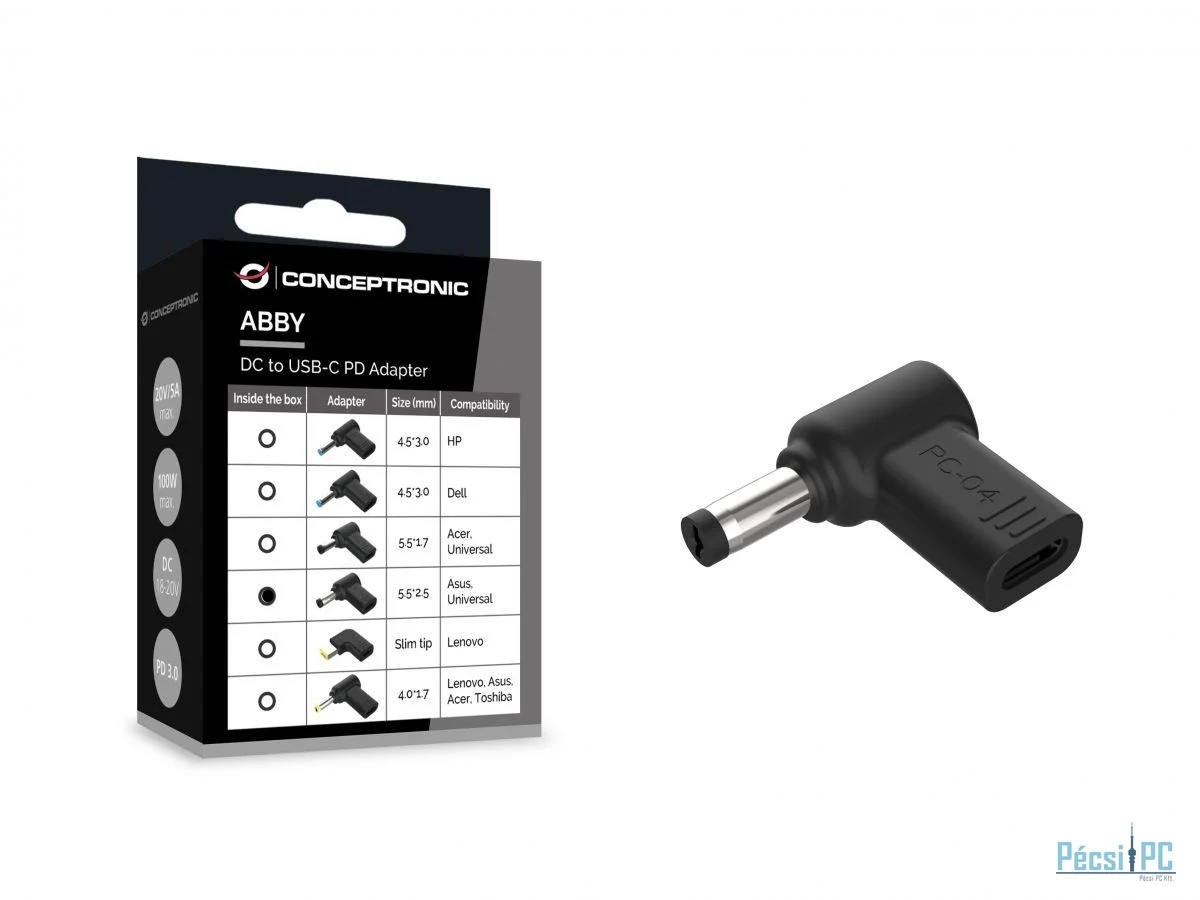 Conceptronic ABBY15PC04 DC to USB-C Adapter 18-20V Asus/Universal 5.5x2.5mm