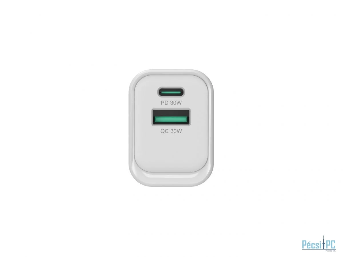 Adapter, 1xUSB-A, 1xUSB-C, Kábel csatlakozó USB-C/MicroUSB/Lightning, 5V/9V/12V/15V/20V, 3A, 33W, QC, PD, White