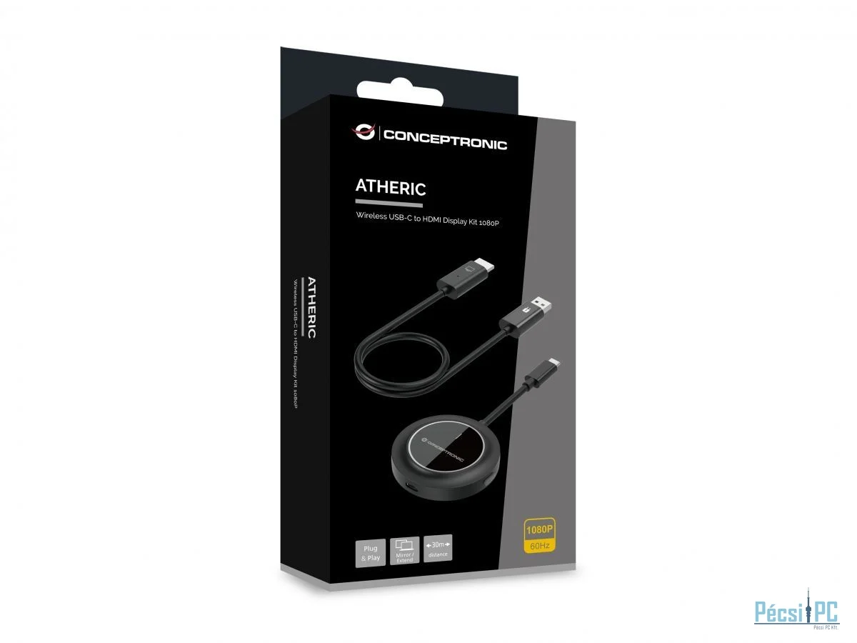 Conceptronic ATHERIC01B Wireless USB-C to HDMI Display Kit 1080P