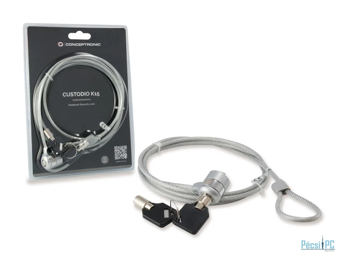 Conceptronic CNBSLOCK15 Keyed Laptop Lock, 1.5m Grey