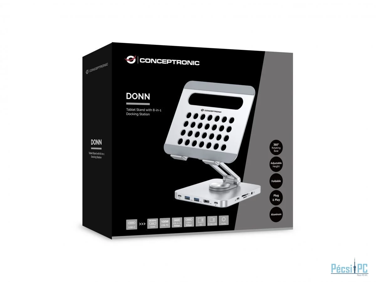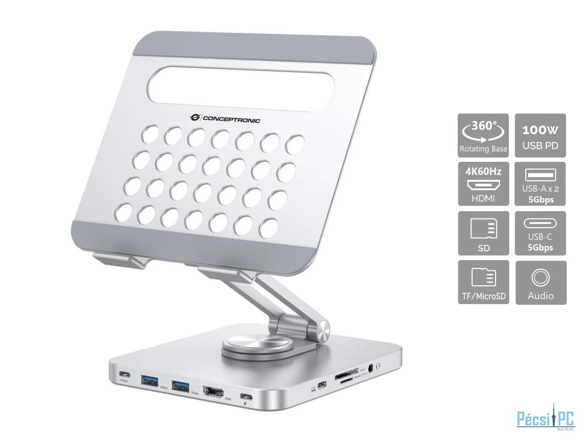 Conceptronic DONN26G Tablet Stand with 8-in-1 USB 3.2 Gen 1 Docking Station