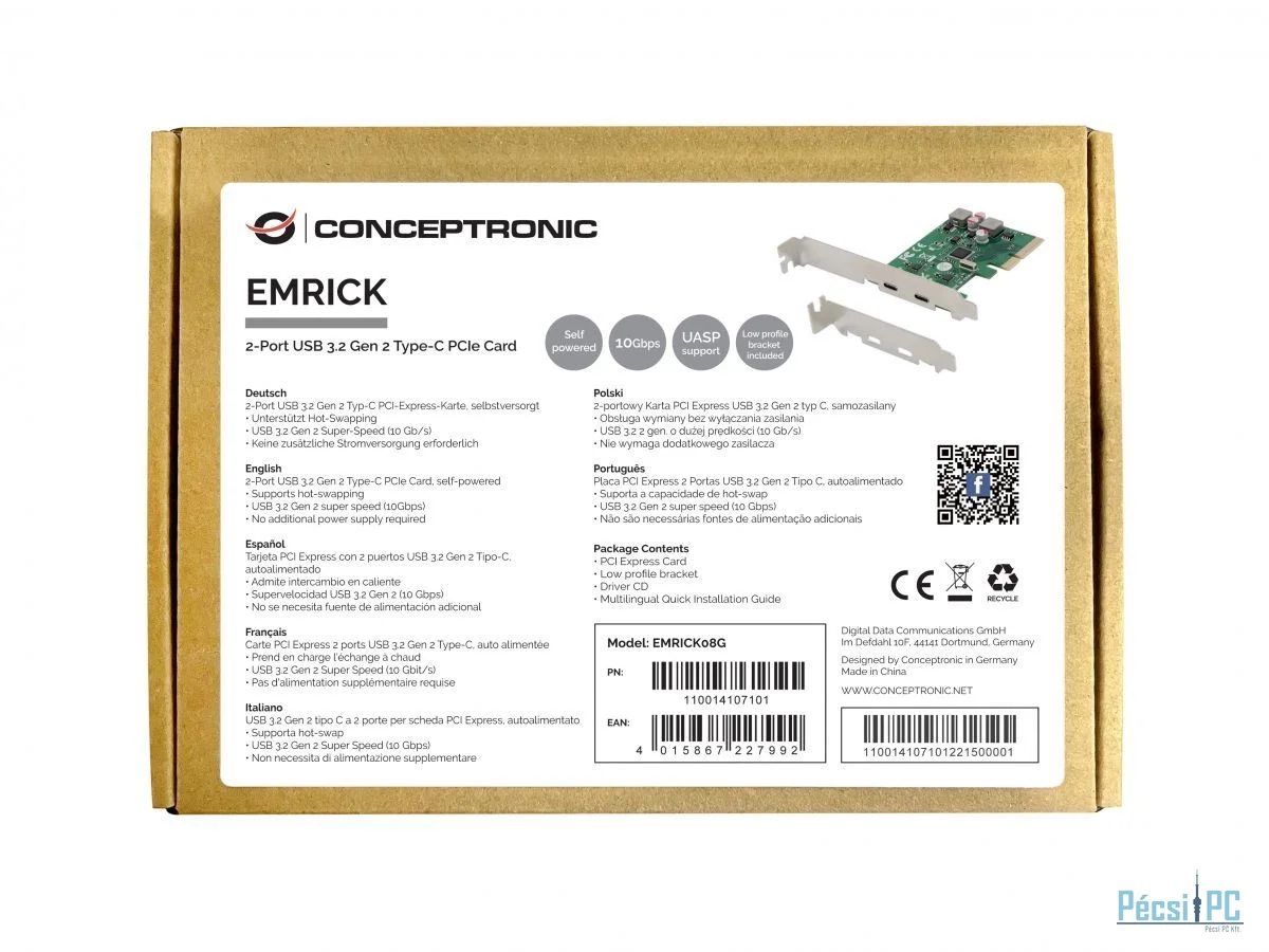Conceptronic EMRICK08G 2-Port USB 3.2 Gen 2 Type-C PCIe Card