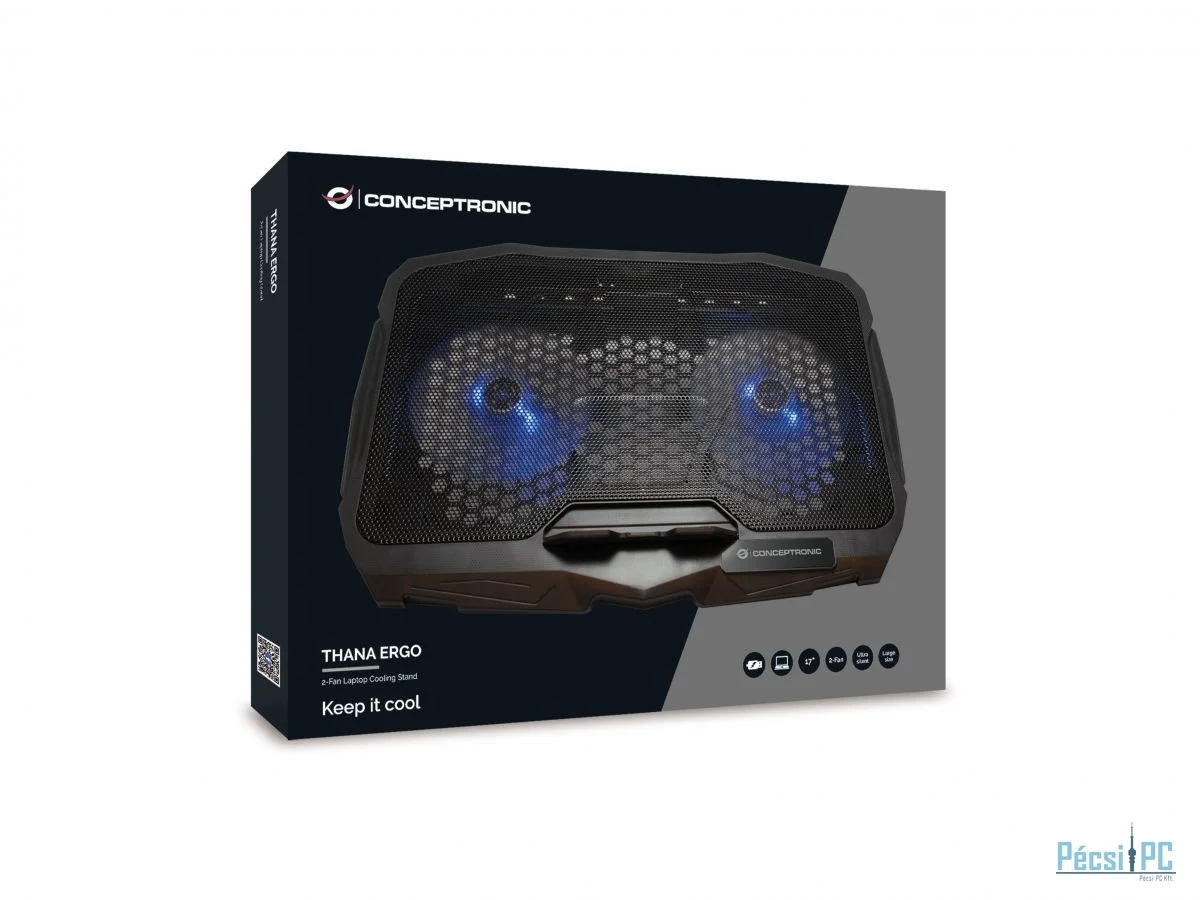 Conceptronic THANA07B ERGO 2-Fan Laptop Cooling Pad Black
