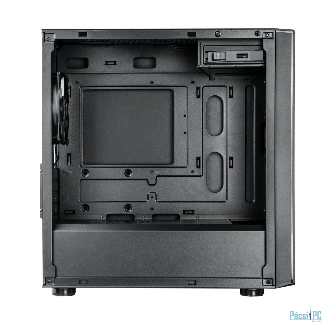 microATX, Black, 1x5,25", 2x3,5", 2x2,5", 2xUSB3.2, Audio, Táp nélkül, 413,5x203,5x425mm, Ventilátor:1x12cm, Tempered glass window