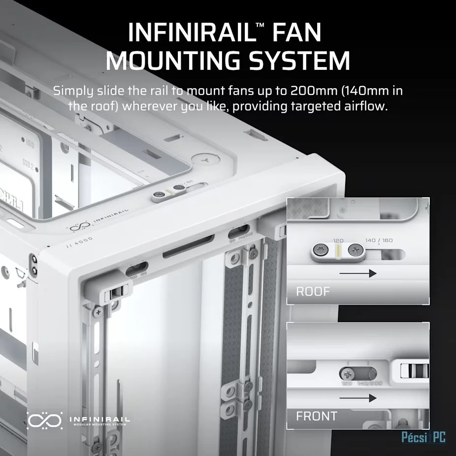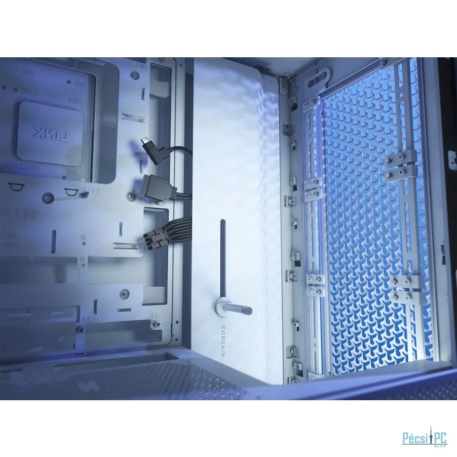 E-ATX, White, 2x3,5", 4x2,5", 2xUSB3.2, 1xUSB Type-C, Audio, Táp nélkül, 486x490x239mm, Tempered glass window, Gamer