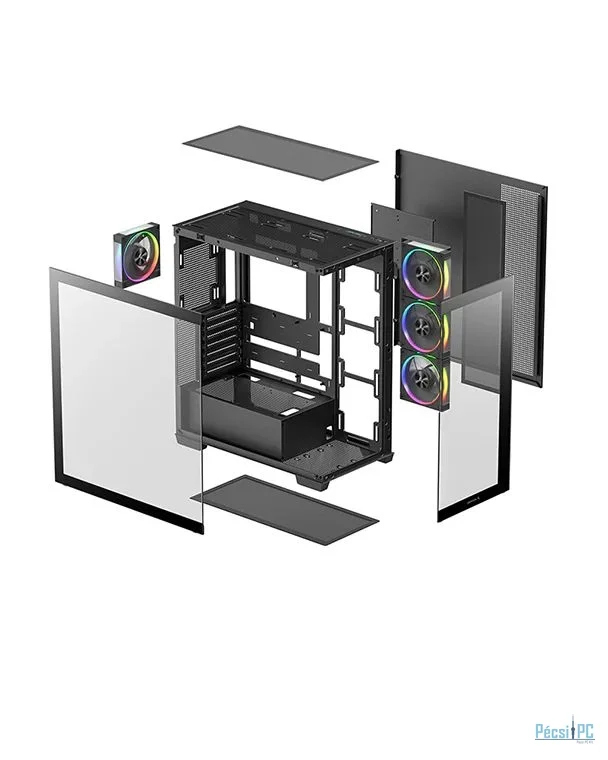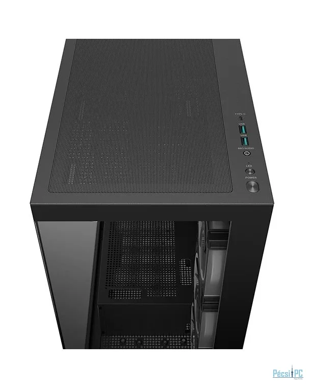 ATX, Black, 2x3,5", 2x2,5", 2xUSB3.0, 1xUSB Type-C, Audio, Táp nélkül, 437x235x501mm, Ventilátor:4x12cm, Tempered glass window, RGB, Gamer