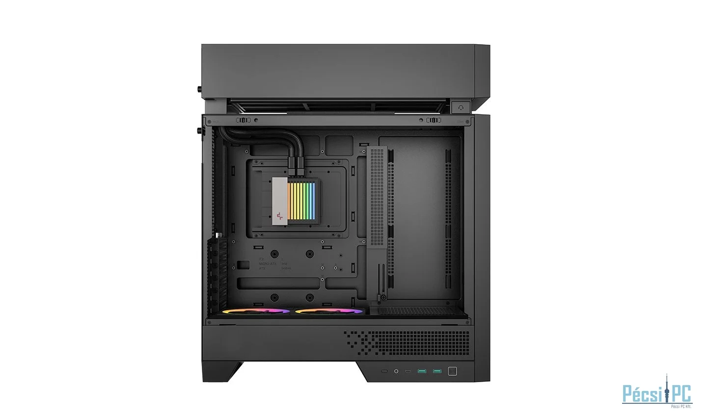 ATX, Black, 2x3,5", 1x2,5", 2xUSB3.0, 1xUSB Type-C, Audio, Táp nélkül, 534x458x235mm, Ventilátor:5x12cm, Tempered glass window, RGB, Gamer