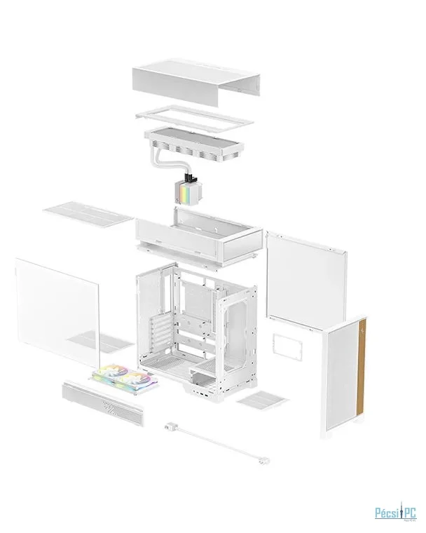 ATX, White, 2x3,5", 2x2,5", 2xUSB3.0, 1xUSB Type-C, Audio, Táp nélkül, 534x458x235mm, Ventilátor:5x12cm, Tempered glass window, RGB, Gamer