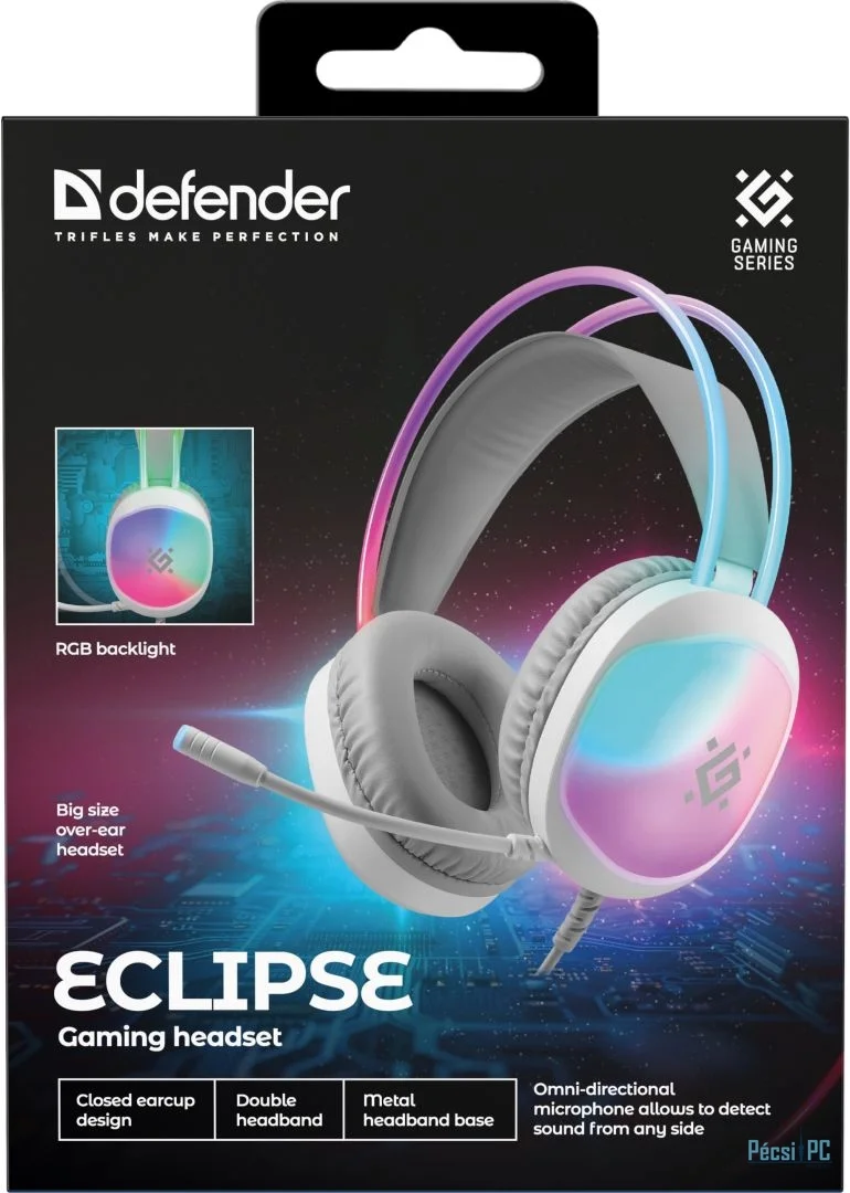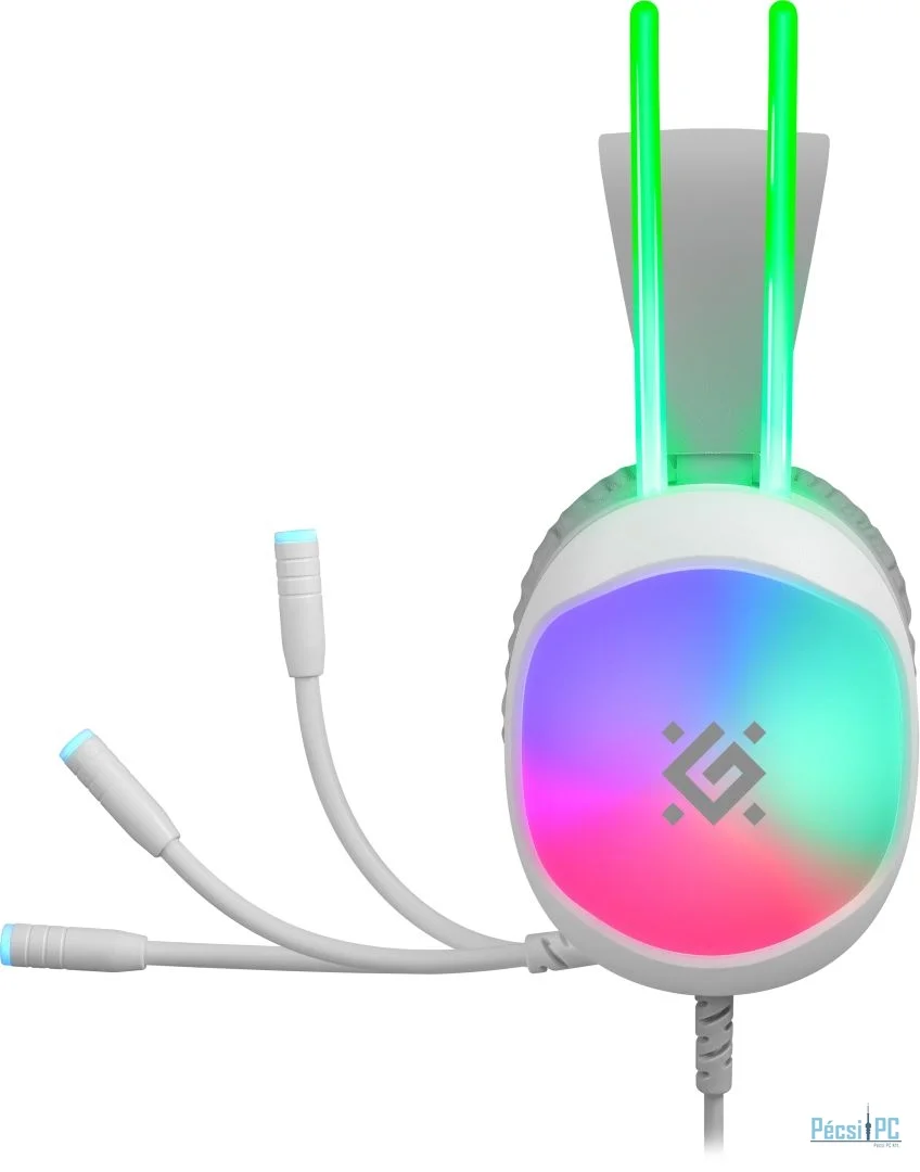 Headset, 2.0, USB, Kábel:2m, 18Ohm, 20Hz-20kHz, Mikrofon, White, RGB, Gamer