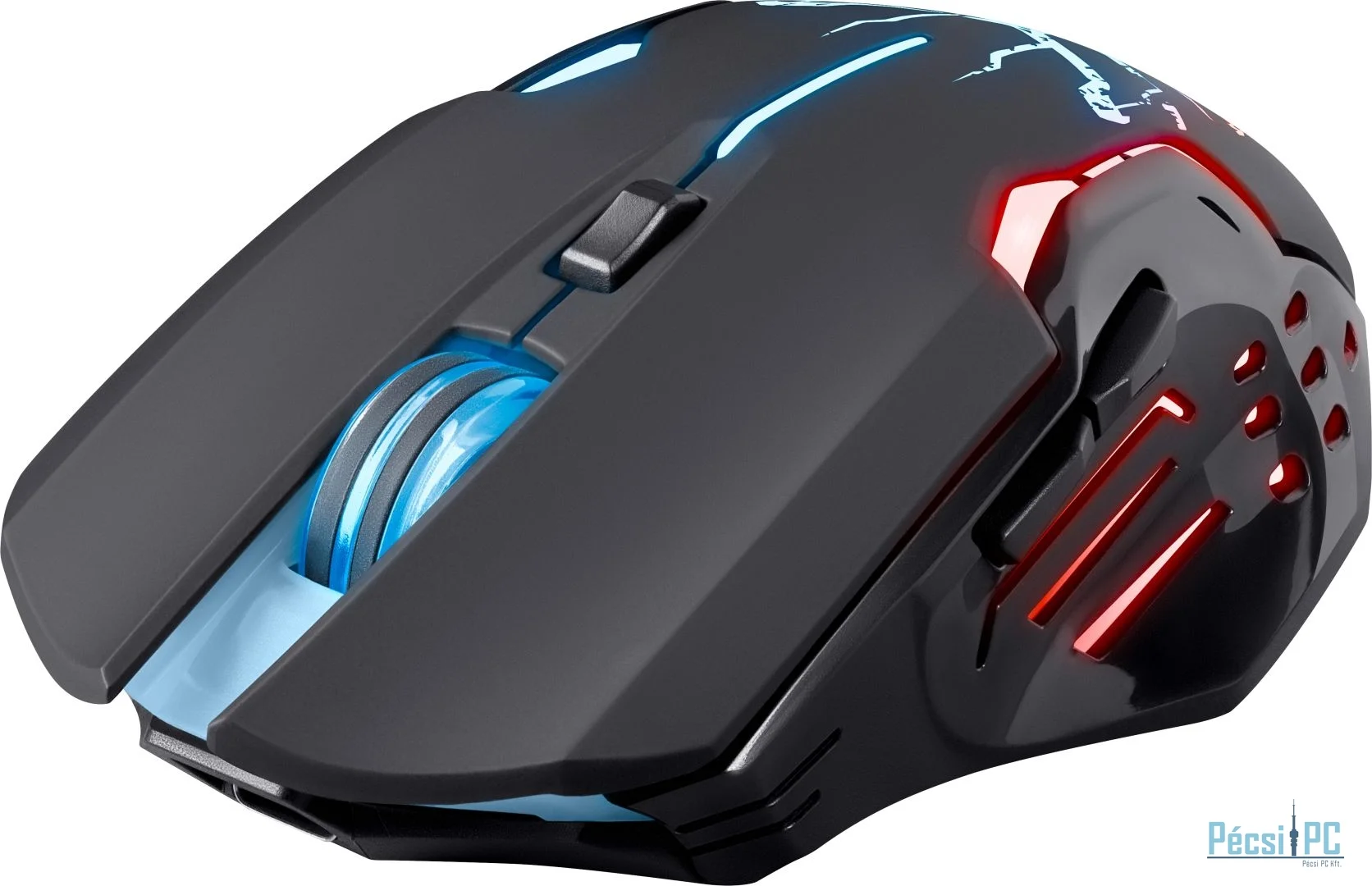 Vezeték nélküli, Wireless 2,4GHz, Optikai, 3200DPI, Black, Újratölthető, RGB, Gamer
