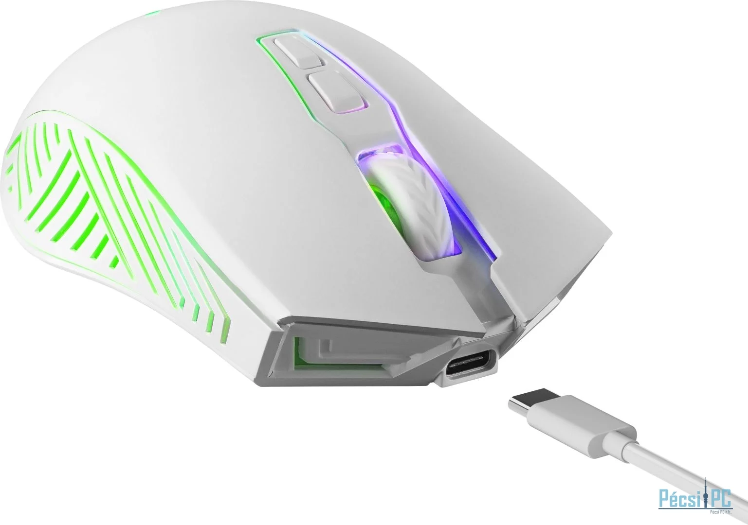 Vezeték nélküli, Wireless 2,4GHz, Optikai, 3200DPI, White, Újratölthető, Gamer