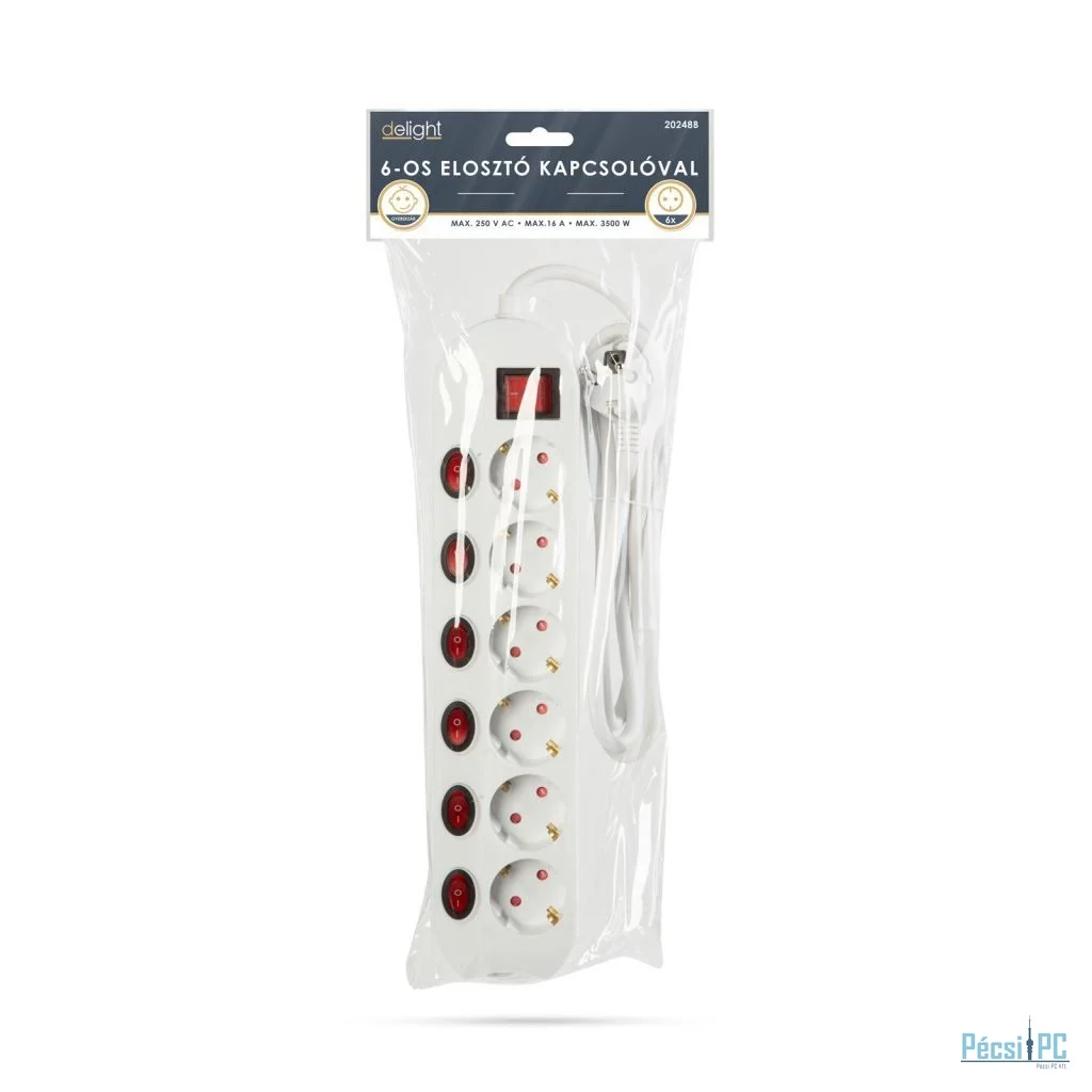 Elosztó, 6xDIN, Kábel1,5m, Kapcsoló, White