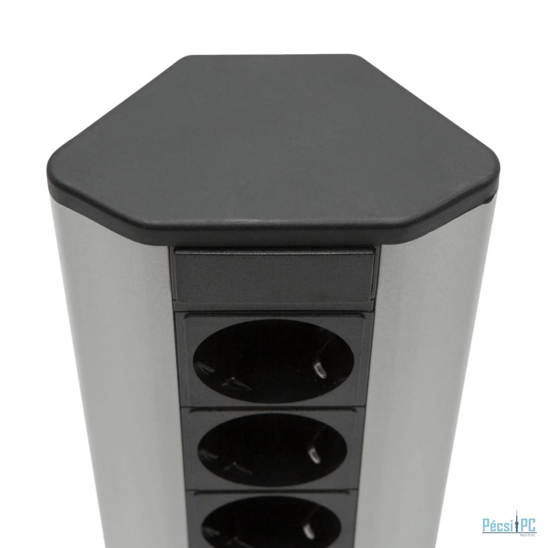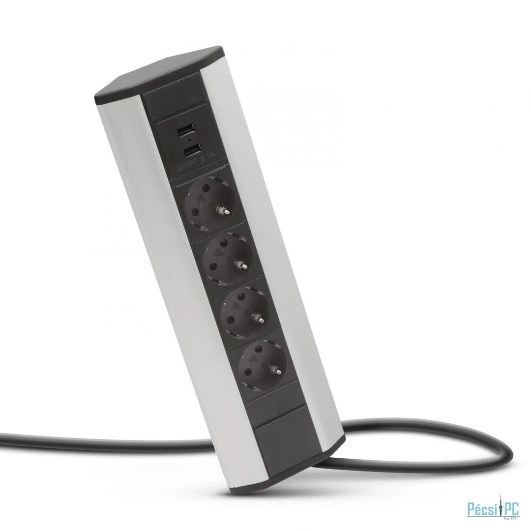 Elosztó, 4xDIN, 1,5m, USB, Aluminium