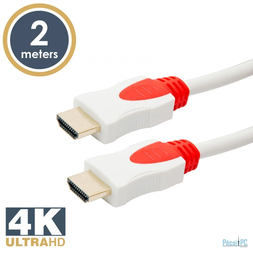 Videó kábel, HDMI, HDMI, High Speed HDMI with Ethernet, Ultra HD 4K, Male/Male, 2m, White