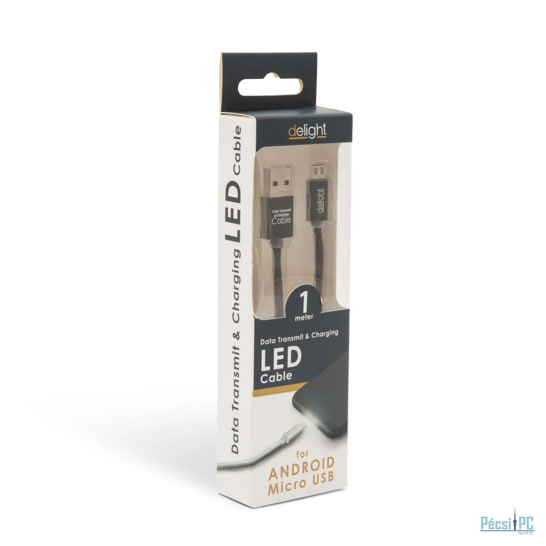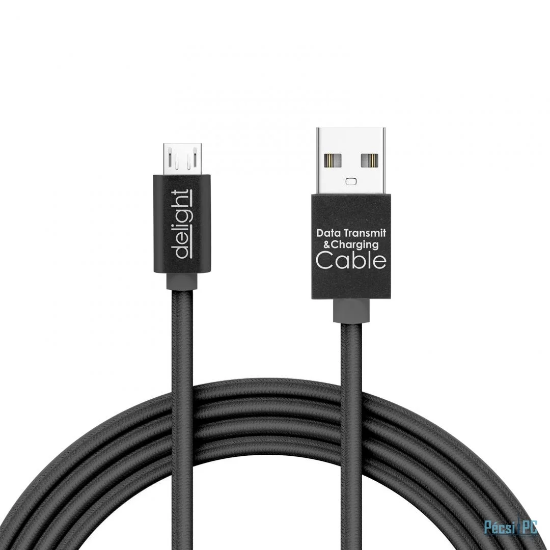 USB kábel, USB-A, microUSB, USB2.0, Male/Male, 1m, Black, Töltő és adatkábel, Szövetborítás