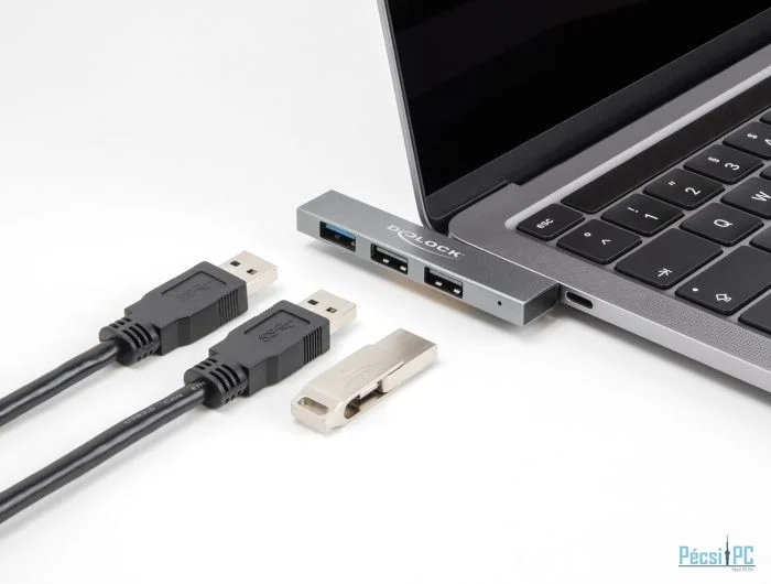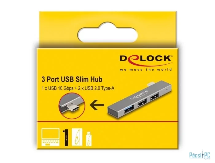 DeLock 3 Port Slim USB Hub with USB Type-C to 1x USB 10 Gbps USB Type-A + 2x USB 2.0 Type-A