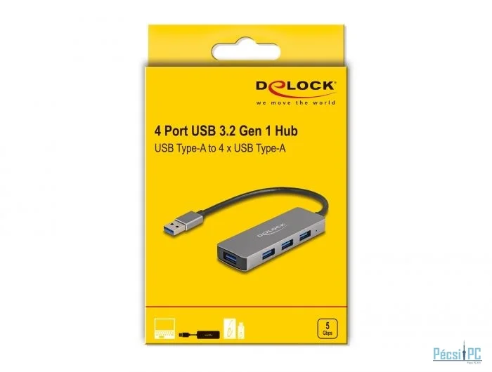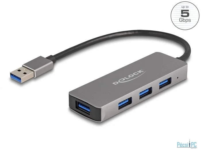 Ez a fémvázas Delock USB hub egység összeköthető egy számítógéppel, laptoppal vagy mobil A-típusú USB csatlakozó felületen keresztül. A számítógépet 4 A-típusú USB porttal egészíti ki. Különböző USB eszközök, például pendrive. kártyaolvasó, külső keret stb. csatlakoztatható hozzá.