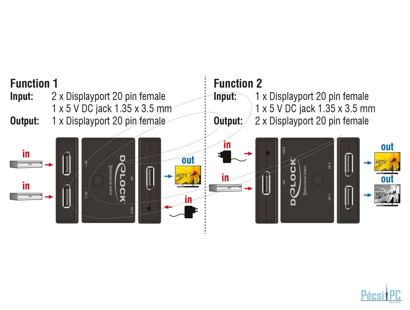 DeLock DisplayPort 2 - 1 Switch bidirectional 8K 30 Hz