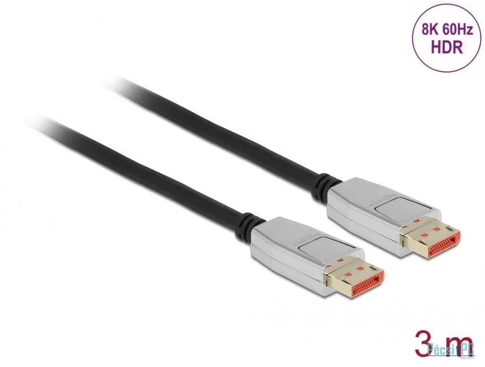 Ezt a rendelkező Delock DisplayPort kábelt használhatja DisplayPort interfésszel rendelkező eszközök összekapcsolására, például monitorok, kivetítők vagy televíziók személyi számítógéppel vagy laptoppal történő összekapcsolására. A 32,4 Gb/s maximális sávszélesség biztosítása esetén a tartalom 8K Ultra HD-n (7680 x 4320 60 Hz-en) jeleníthető meg hozzávetőlegesen 5K (5120 x 2880 120 Hz-en) és 4K Ultra HD (3840 x 2160, 240 Hz) felbontással. A kiváló minőségű, hármas árnyékolású kábel jelentősen javítja a hangátviteli minőséget is 1536 kHz-es mintavételi sebesség mellett.