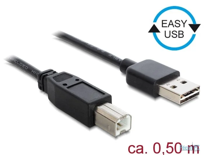 DeLock EASY-USB 2.0 Type-A male > USB 2.0 Type-B male cable 0,5m Black