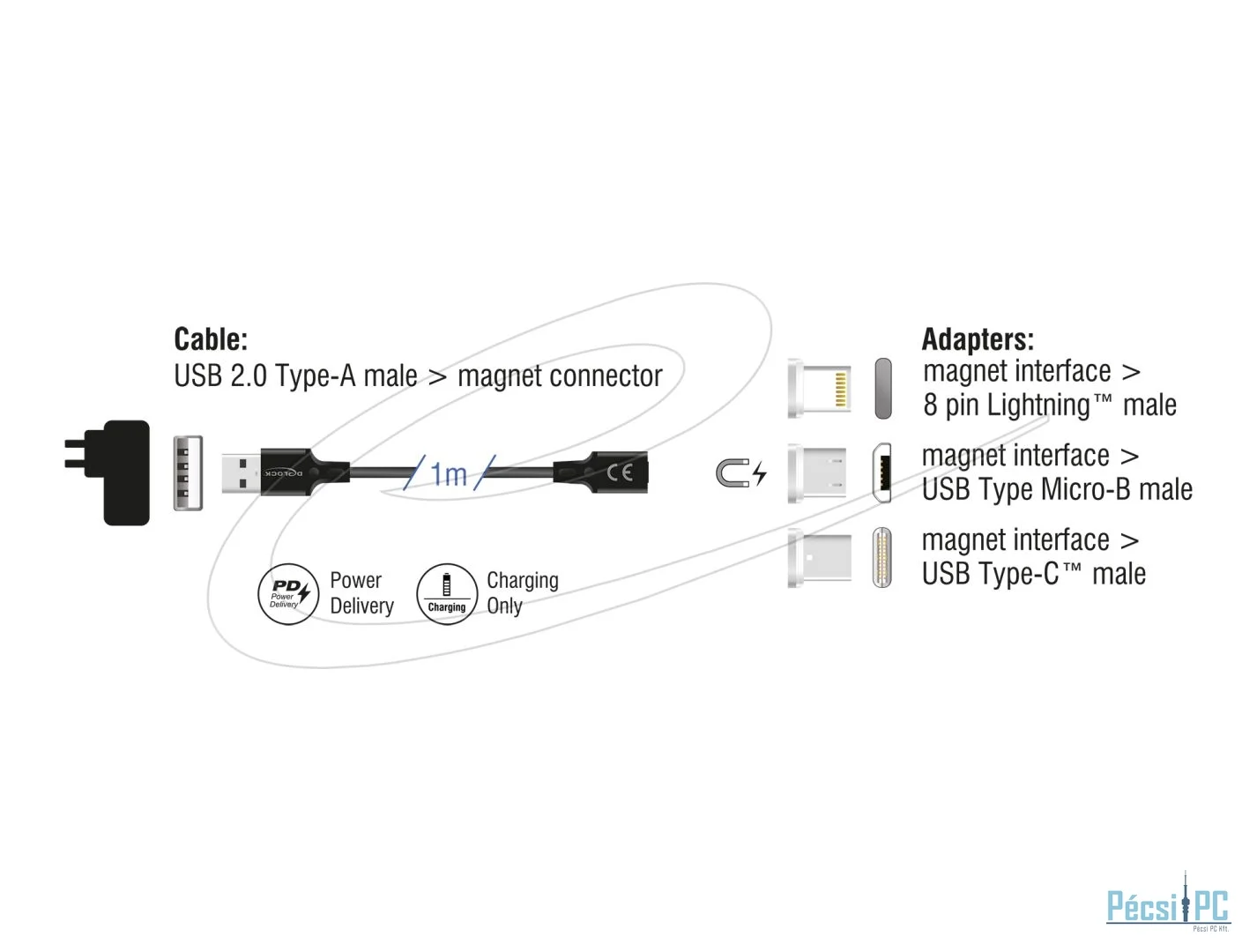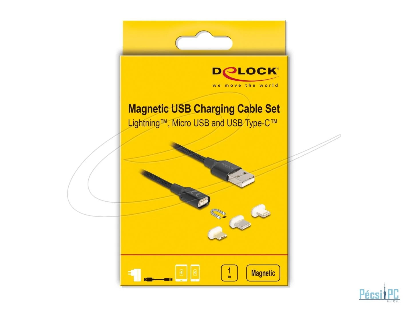 DeLock Magnetic USB Charging Cable Set for 8 Pin Lightning / Micro USB / USB Type-C 1m Black