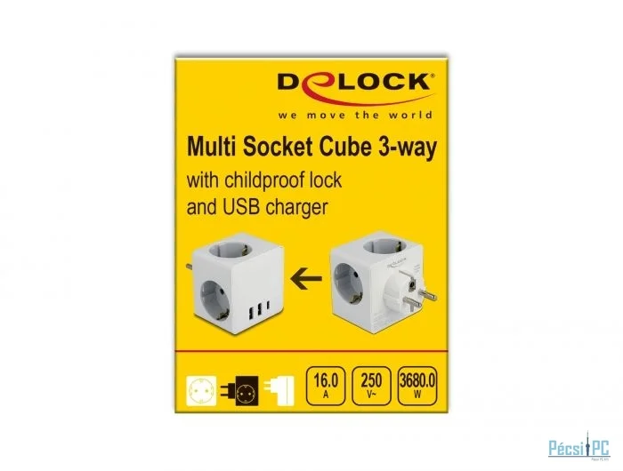DeLock Multi Socket Cube Hálózati Elosztó 3DIN Fali White