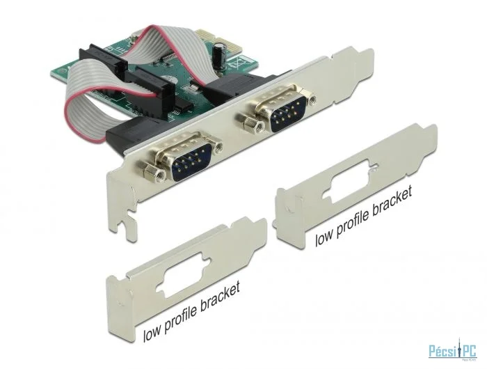 A Delock PCI Express kártya két külső soros RS-232 porttal bővíti a számítógépet. Különböző eszközök, úgy mint szkenner, protokoll átalakító vagy IoT elemek, kapcsolhatók ehhez a kártyához.