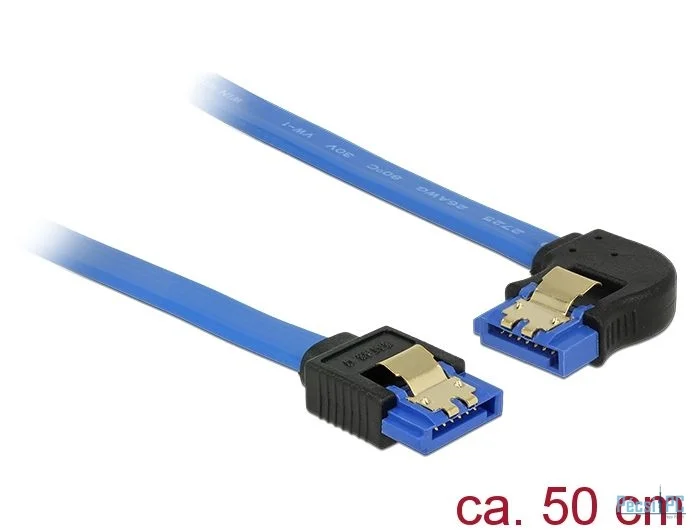 DeLock SATA 6 Gb/s receptacle straight > SATA receptacle left angled 50cm blue with gold clip cable