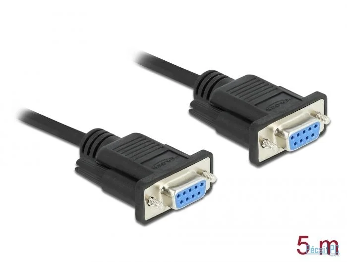 DeLock Serial Cable RS-232 D-Sub 9 female to female null modem with narrow plug housing CTS / RTS auto control 5m Black