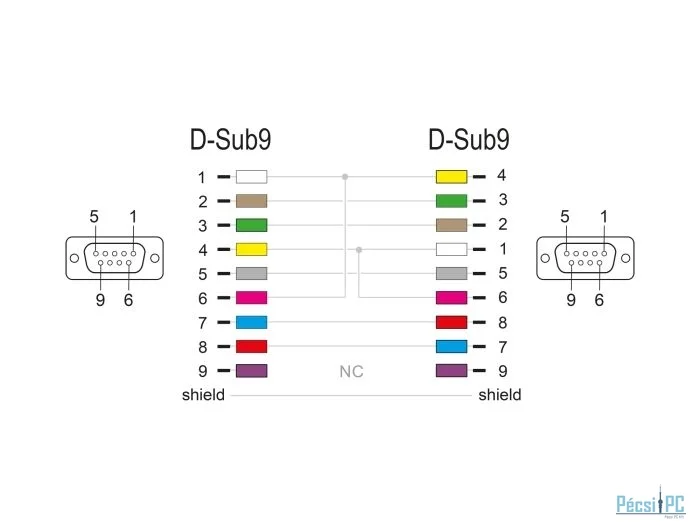 Adatátviteli kábel, RS232, RS232, Male/Male, 0,5m, Black