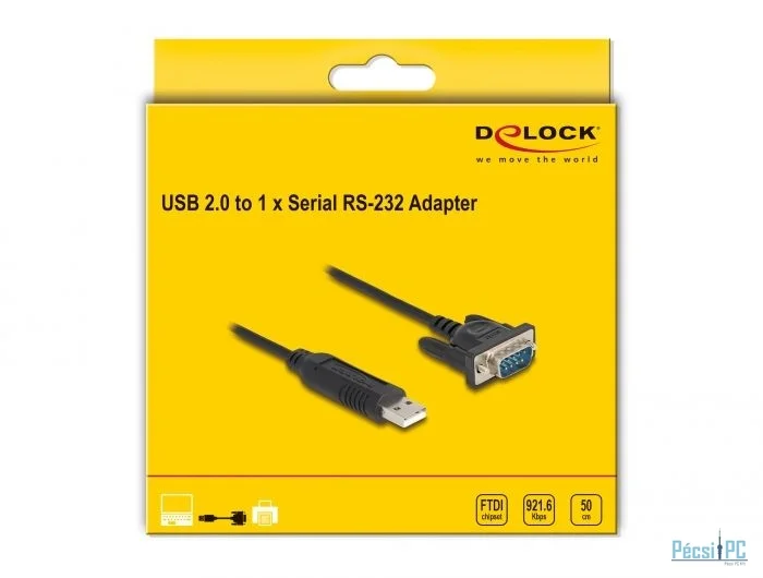 DeLock USB 2.0 to serial RS-232 adapter D-Sub 9 male with compact connector housing 50 cm FTDI Black