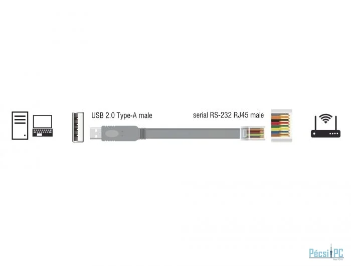 DeLock USB 2.0 Type-A male > 1 x Serial RS-232 RJ45 male 1m grey