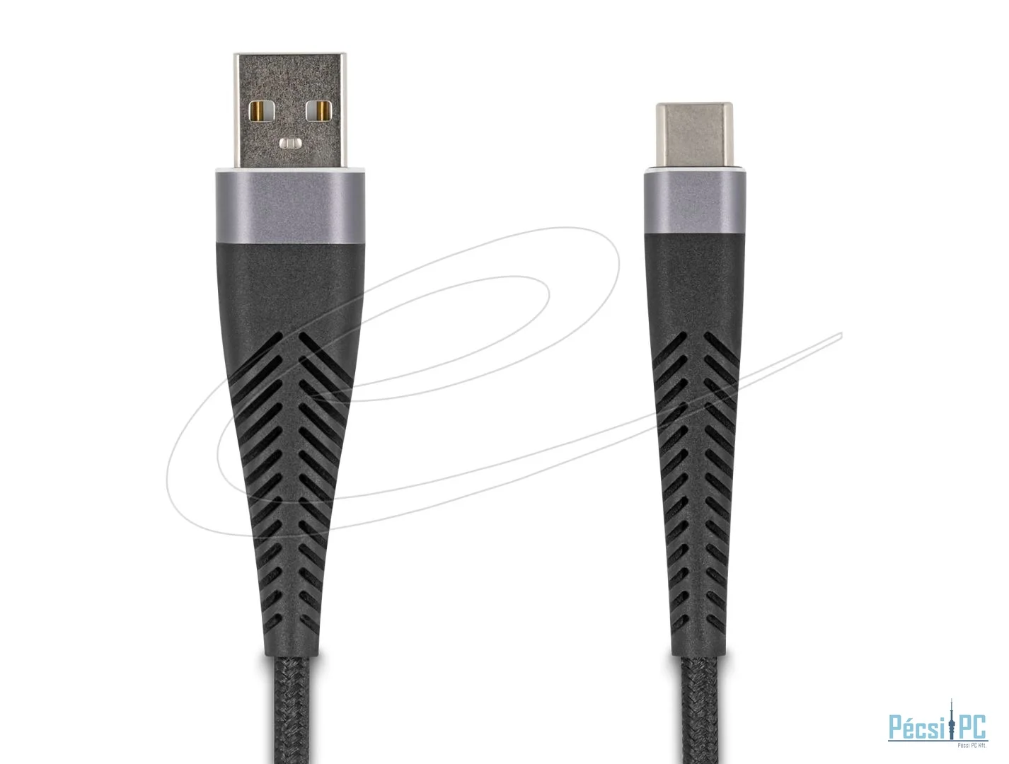 USB kábel, USB-A, USB-C, USB2.0, Male/Male, 2m, Black, Töltő és adatkábel, Szövetborítás