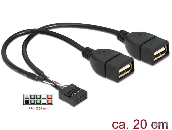 DeLock USB Cable Pin header female > 2 x USB 2.0 type-A female 20cm