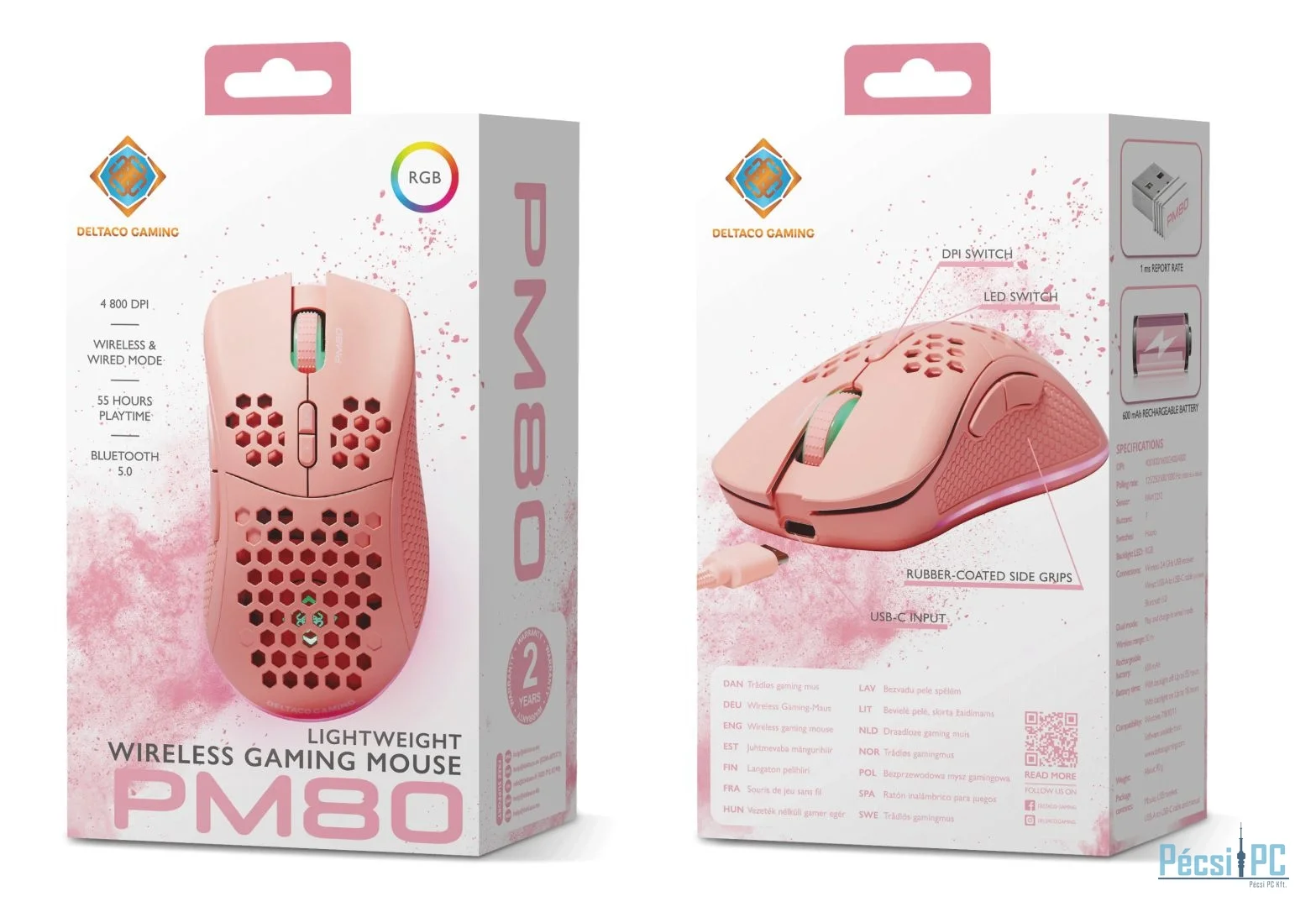 Deltaco GAM-120 PM80 Wireless Lightweight Gaming Mouse Pink