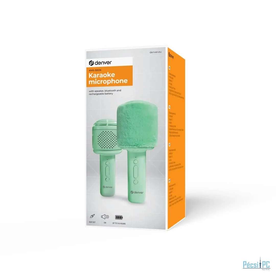 Denver KMS-30RO Bluetooth Karaoke Microphone Speaker with fluffy top Green