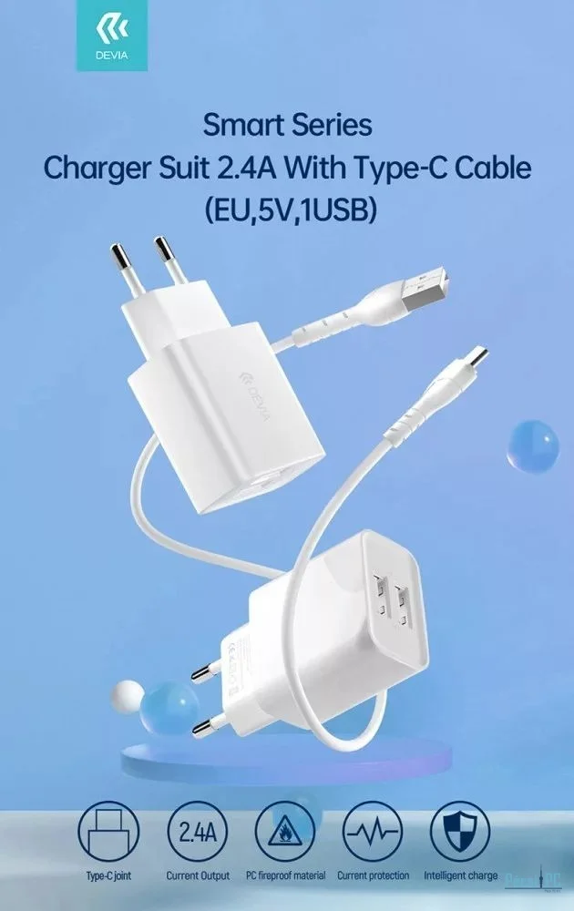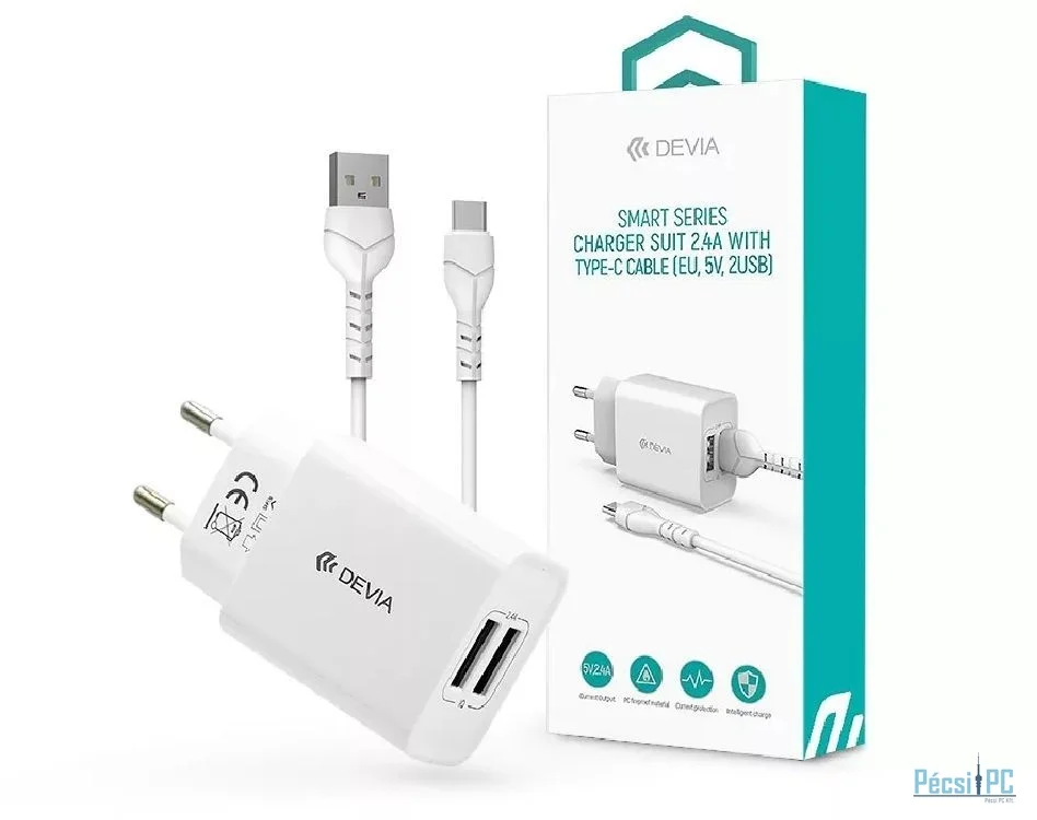 Devia Smart Series Charger Suit 2,4A with Type-C Cable 1m White