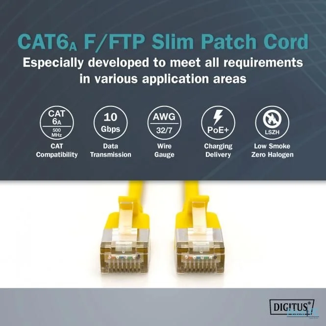Digitus CAT6A F-FTP Patch Cable 0,5m Yellow